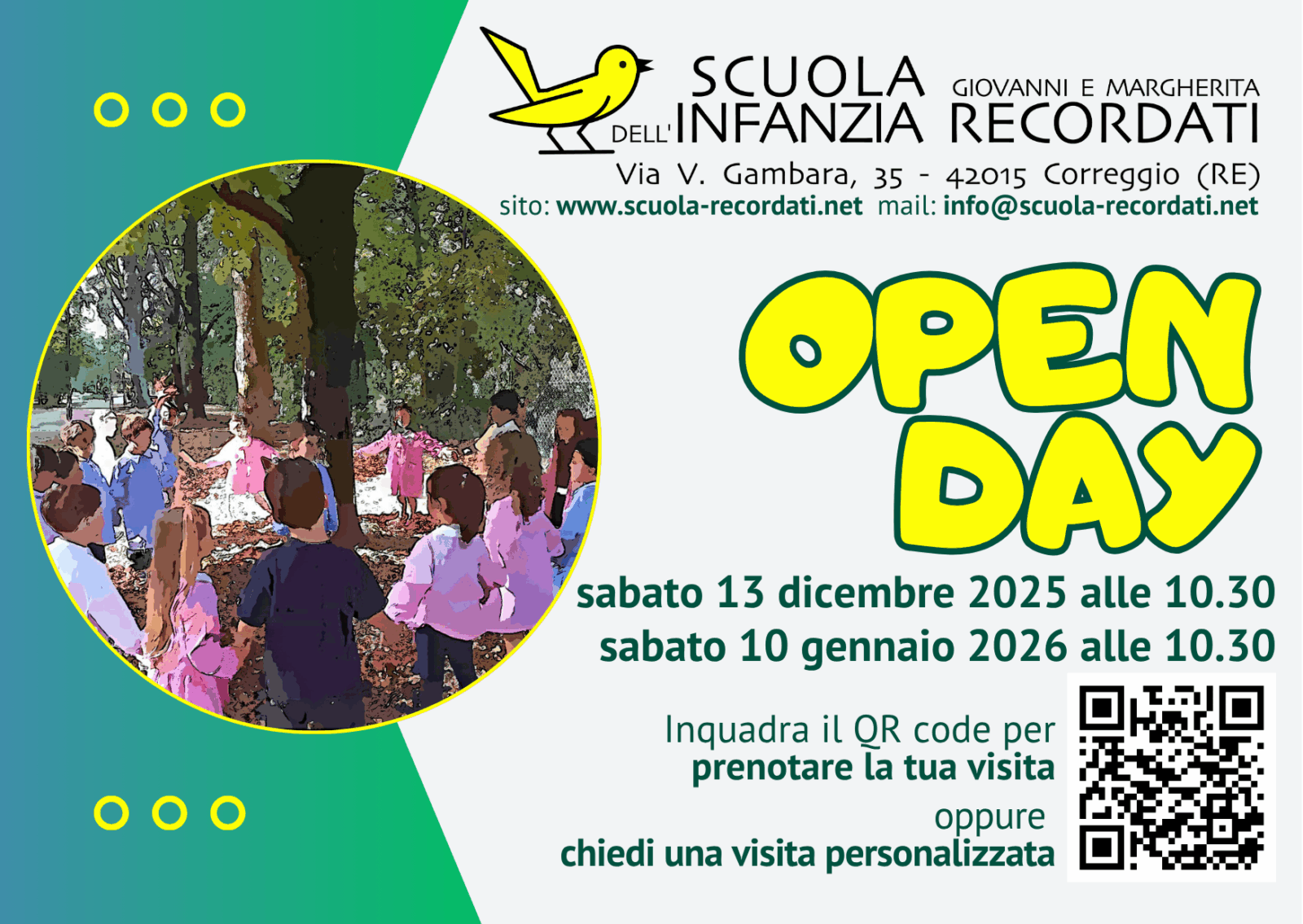 PER CONOSCERCI …OPEN DAY sabato 16 dicembre 2023 alle 10 e alle 11 oppure venerdì 19 gennaio 2024 alle 18…